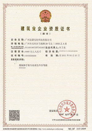 廣州達(dá)蒙安防科技有限公司專業(yè)從事建筑施工技術(shù)及施工機(jī)械的研究、咨詢、制造及專業(yè)承包,是中國(guó)建筑業(yè)協(xié)會(huì)建筑安全分會(huì)和中國(guó)標(biāo)準(zhǔn)化協(xié)會(huì)施工安全分會(huì)會(huì)員單位,具有附著式升降腳手架專業(yè)承包相關(guān)資質(zhì)。